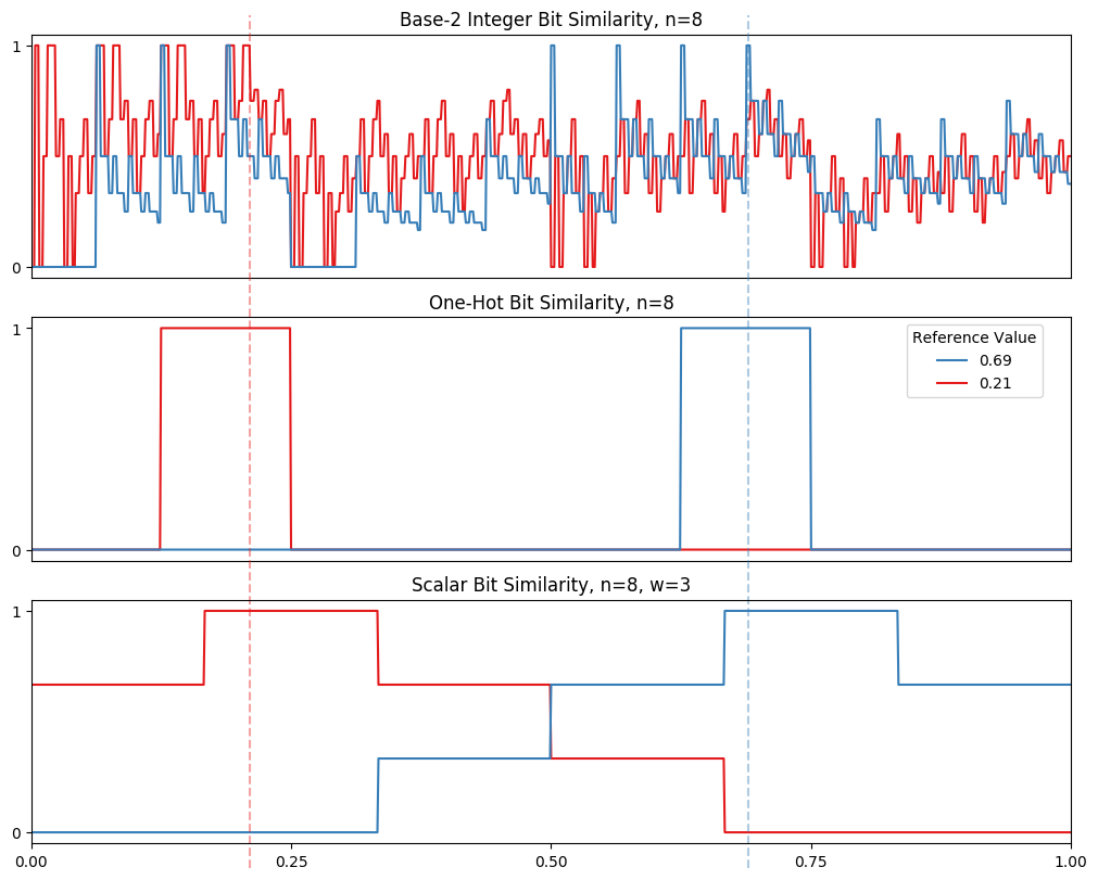 Sparsey conforms to DCC characteristic 4, but this is not a strong constraint. Virtually all natural inputs spaces/processes that have ever been or are currently represented on digital computers are necessarily represented discretely, i.e., bit patterns.